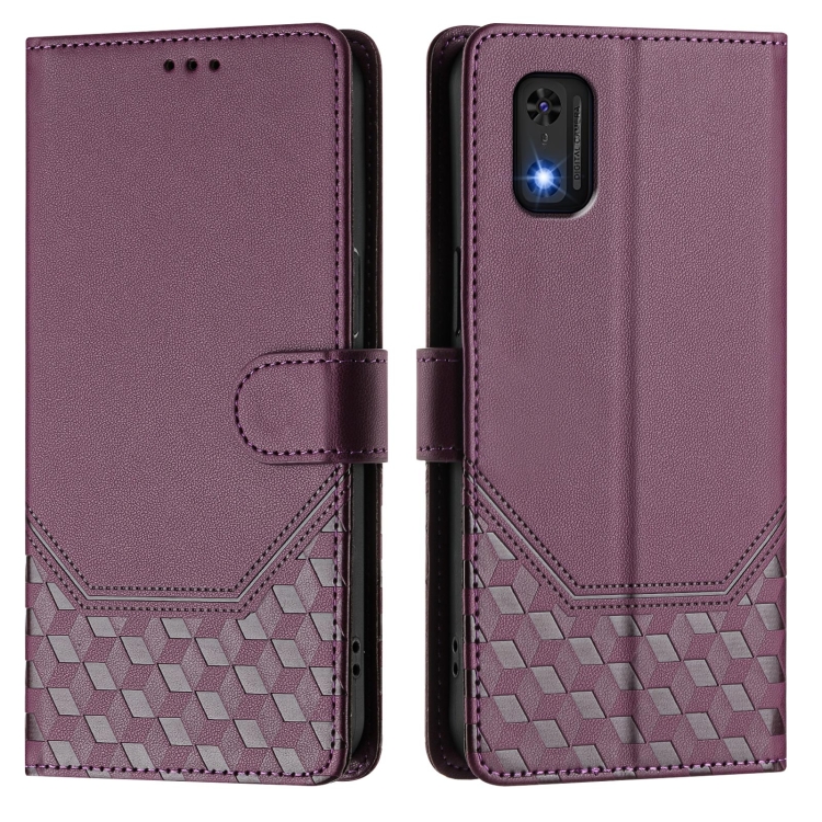 Funda de Cuero Rfid con Relieve en Panal para Teléfono Itel A23 Pro/A17 (Violeta)