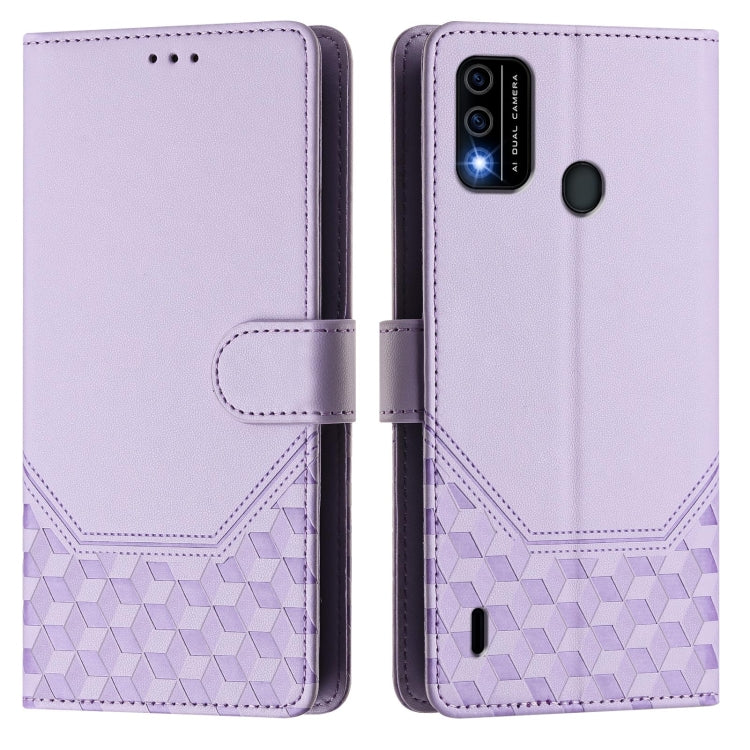 Funda de Cuero Rfid con Relieve en Panal para Teléfono Itel A48 (Morado Claro)