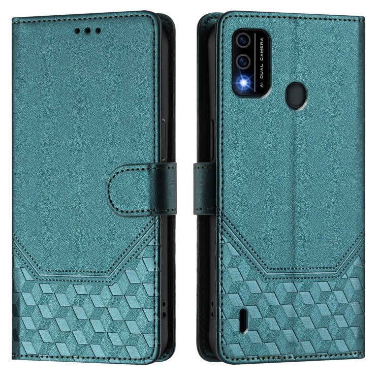Funda de Cuero Rfid para Teléfono Itel A48 con Relieve en Panal (Verde Pavo Real)