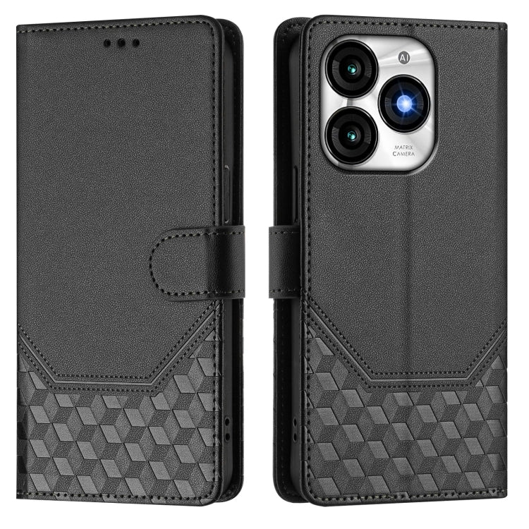 Funda de Cuero Rfid para Teléfono Itel A70 con Relieve en Panal (Negra)