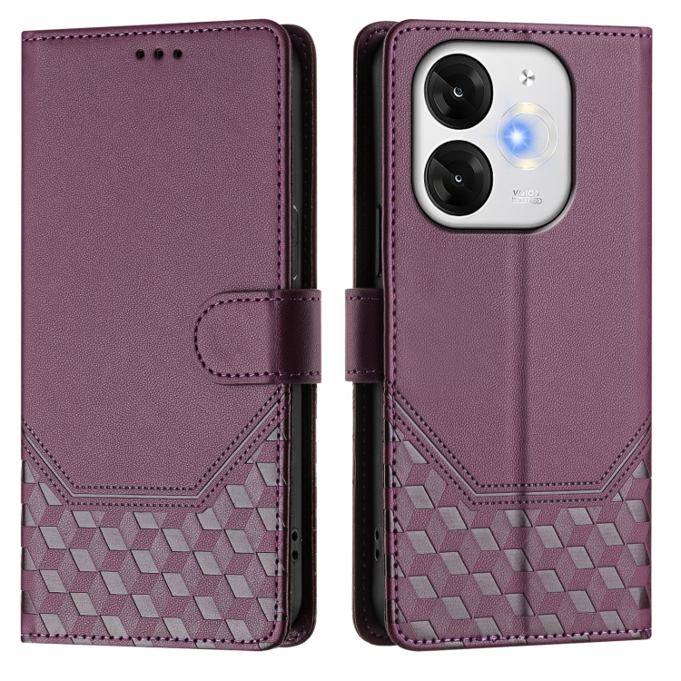 Funda de Cuero Rfid con Relieve en Panal para Teléfono Itel A80 4G (Violeta)
