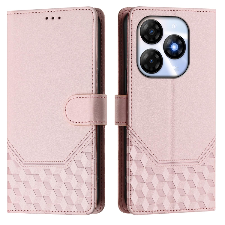 Funda de Cuero Rfid con Relieve en Panal para Itel P55 4G y Infinix Smart 8 (Rosa)