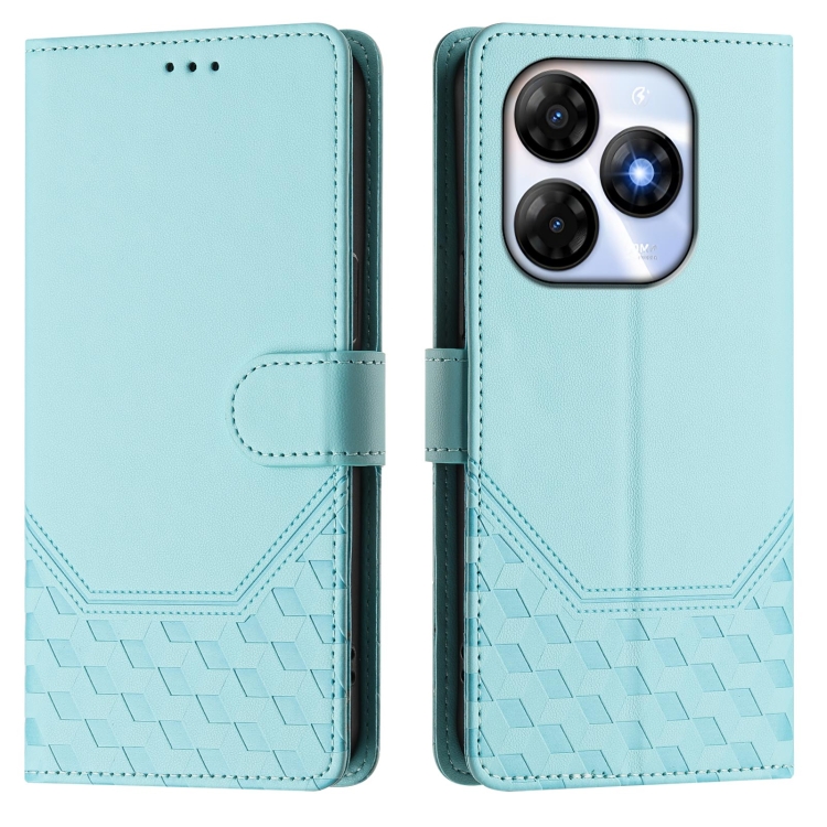 Funda Cuero Rfid con Relieve Panal para Teléfono Itel P55 4G/Infinix Smart 8 (Verde Menta)