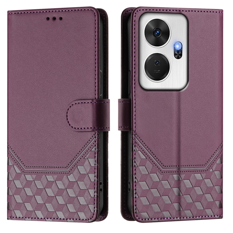 Funda de Cuero Rfid con Relieve en Panal para Teléfono Itel P55+ (Violeta)