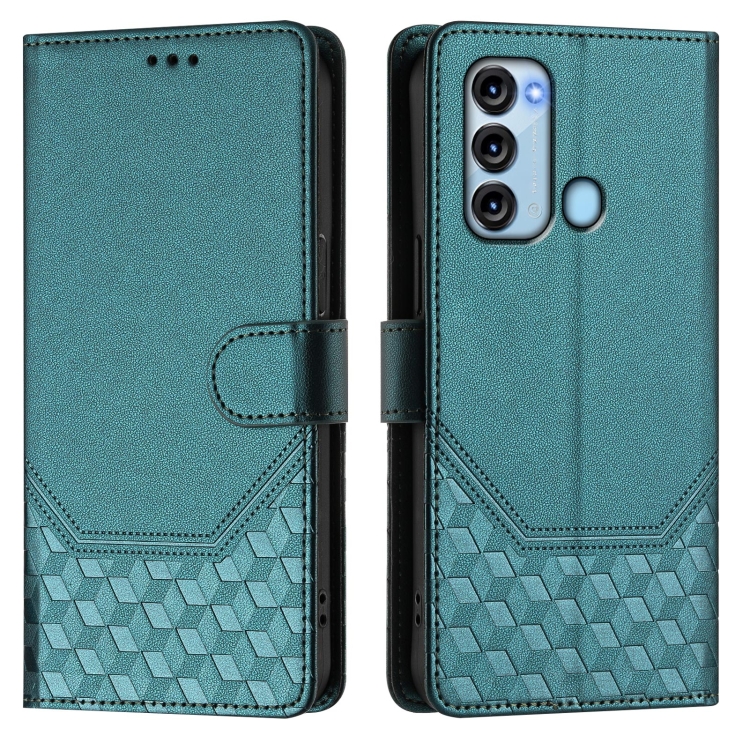 Funda de Cuero Rfid con Relieve en Panal para Teléfono Itel S17/Vision 3 (Verde Pavo Real)