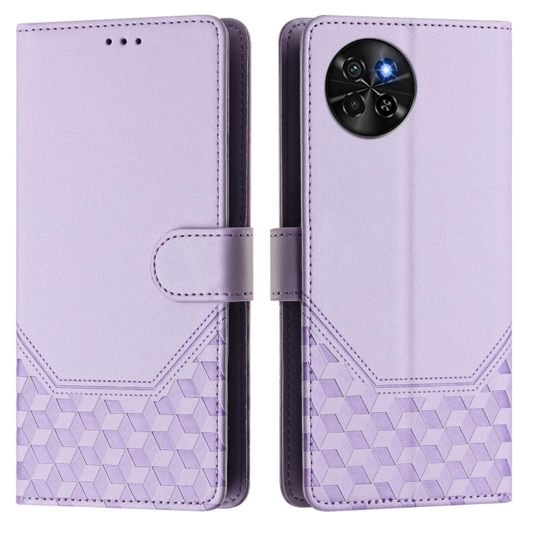 Funda de Cuero Rfid con Relieve en Panal para Teléfono Itel S23 S665L (Morado Claro)
