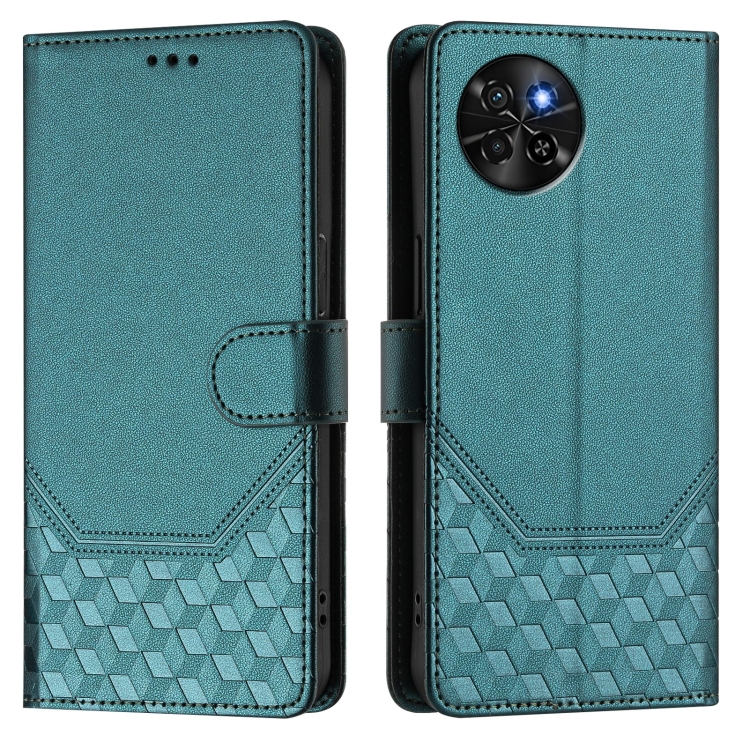 Funda de Cuero Rfid con Relieve en Panal para Teléfono Itel S23 S665L (Verde Pavo Real)