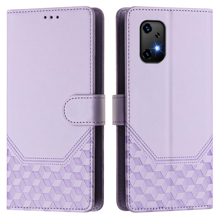 Funda de Cuero Rfid con Relieve en Panal para Teléfono Umidigi Bison X20 (Morado Claro)