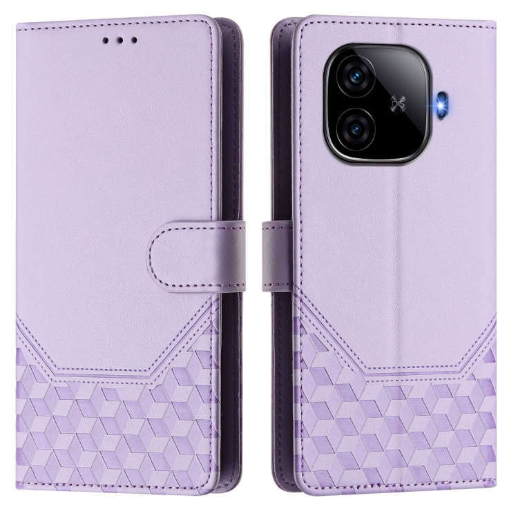 Funda de Cuero Rfid con Relieve En Panal para Vivo Iqoo Z9/Z9 Turbo (Morado Claro)