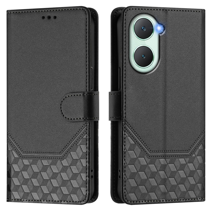 Funda de Cuero Rfid con Relieve En Panal para Vivo Y03 4G Global / Y18 4G (Negra)