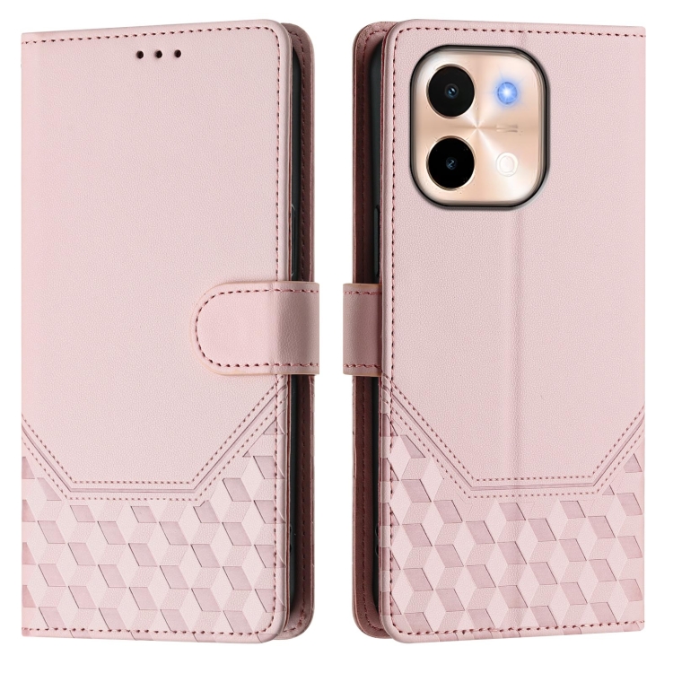 Funda de Cuero Rfid con Relieve En Panal para Vivo Y28 4G (Rosa)
