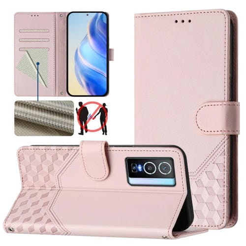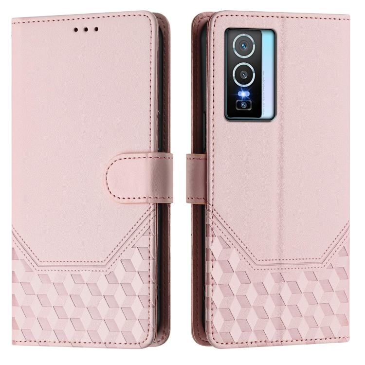 Funda de Cuero Rfid con Relieve En Panal para Vivo Y76 5G (Rosa)
