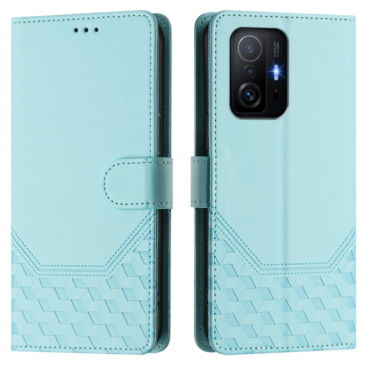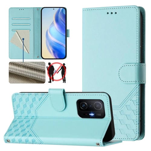 Funda de Cuero Rfid con Relieve En Panal para Xiaomi 11T/11T Pro (Verde Menta)