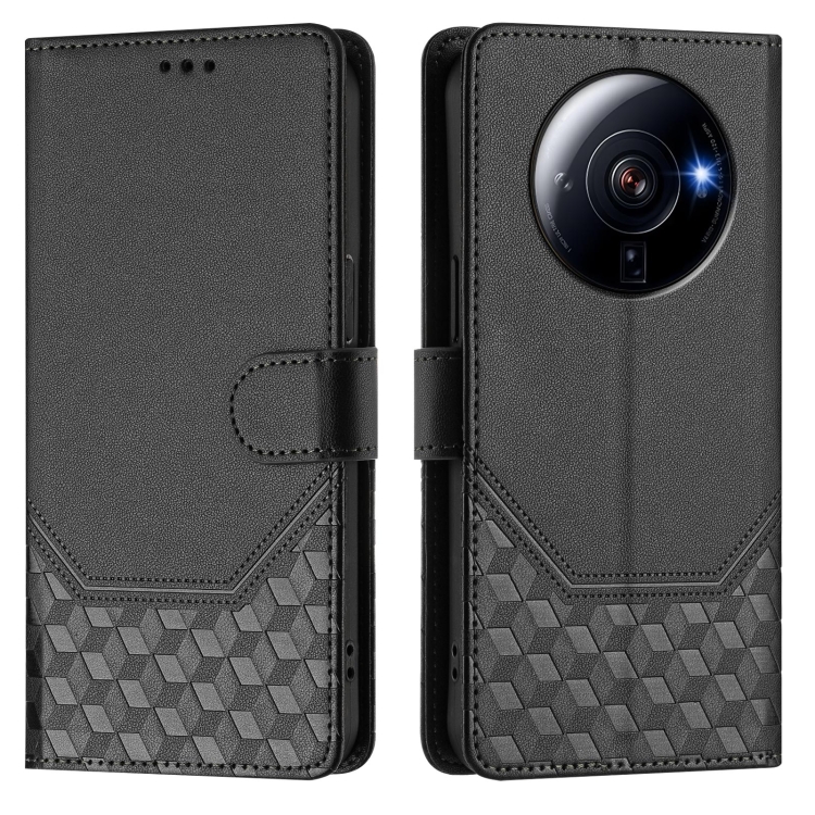 Funda de Cuero Rfid con Relieve En Panal para Xiaomi 12S Ultra (Negra)