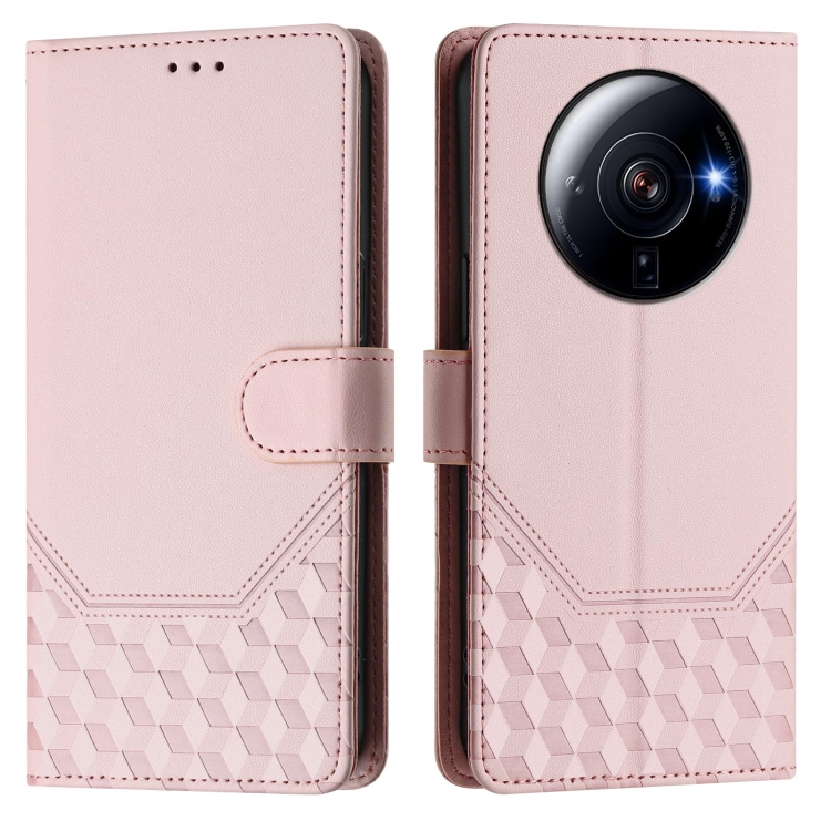 Funda de Cuero Rfid con Relieve En Panal para Xiaomi 12S Ultra (Rosa)