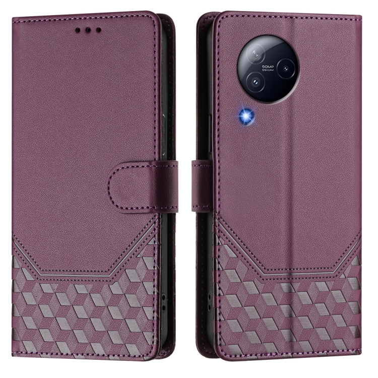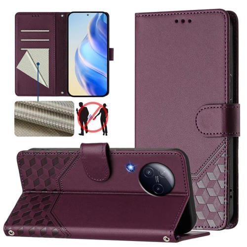 Funda de Cuero Rfid con Relieve En Panal para Xiaomi Civi 3 (Violeta)