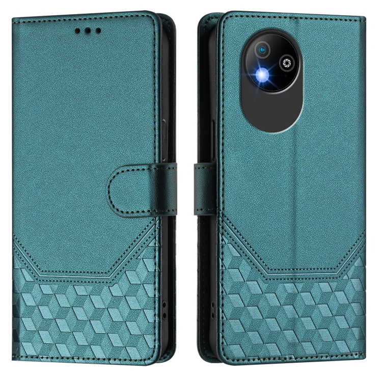 Funda de Cuero Rfid con Relieve en Panal para ZTE Blade A35 Lite (Verde Pavo Real)