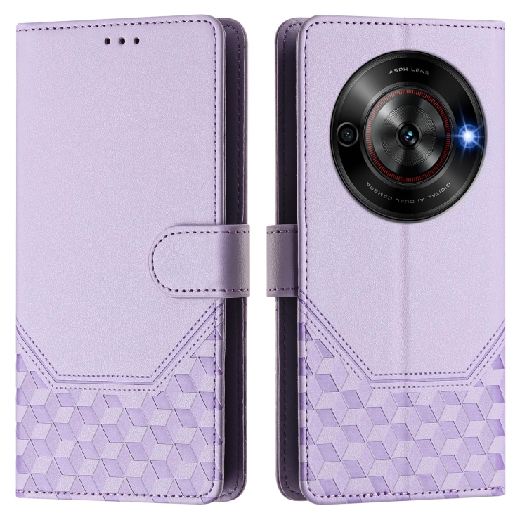 Funda de Cuero Rfid con Relieve en Panal para ZTE Blade A75 5G (Morado Claro)