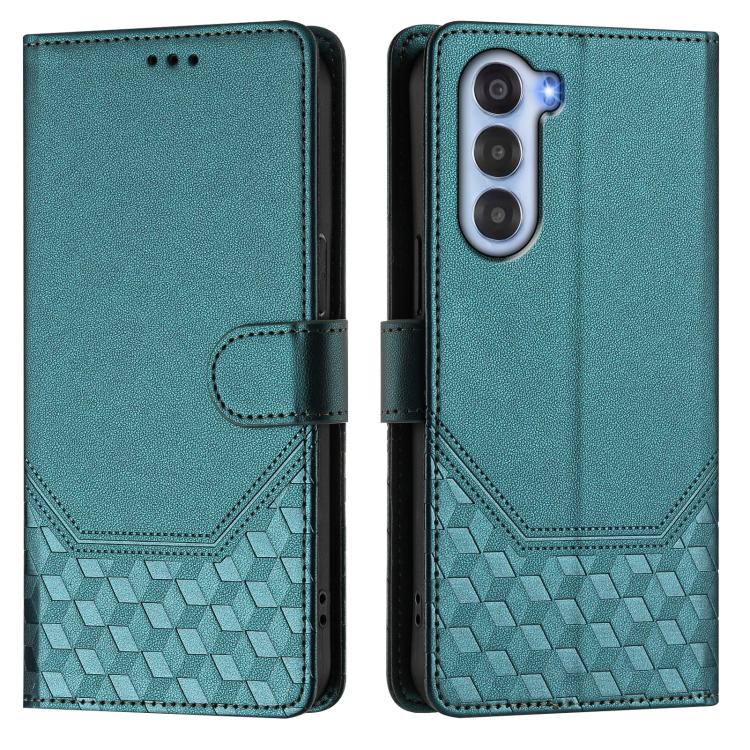 Funda de Cuero Rfid con Relieve en Panal para ZTE Nubia S 5G A403Zt (Verde Pavo Real)