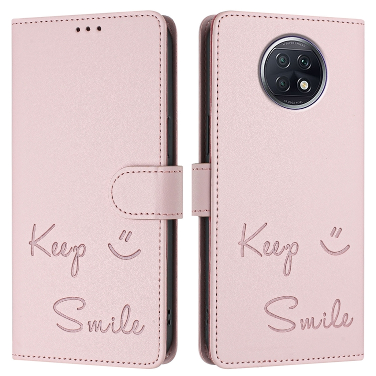 Funda de Cuero Rfid con Relieve Global Smile para Redmi Note 9T (Rosa)