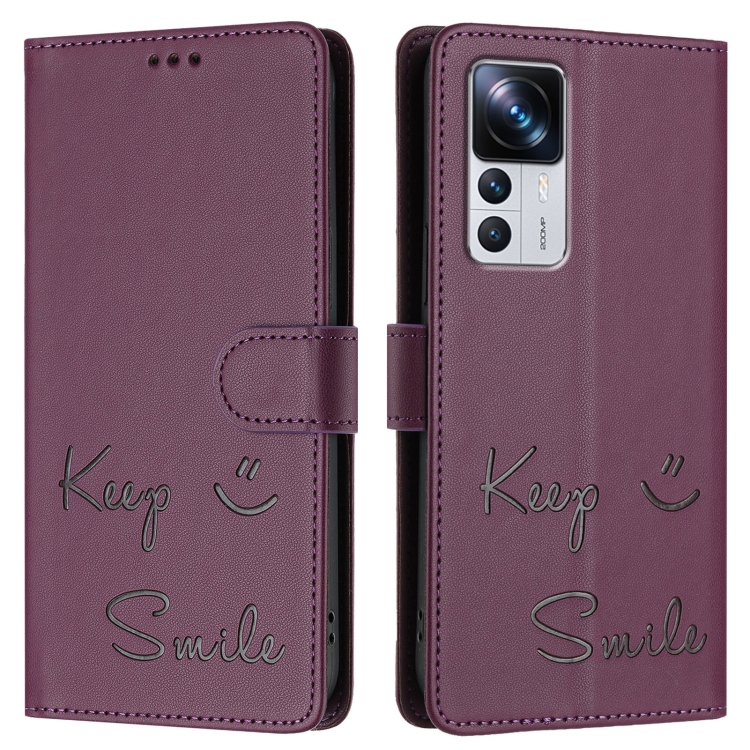 Funda de Cuero Rfid con Relieve Smile para Redmi K50 Ultra (Violeta)