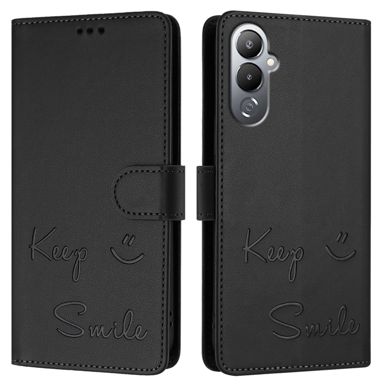 Funda de Cuero Rfid con Relieve Smile para Tecno Pova 4 (Negra)