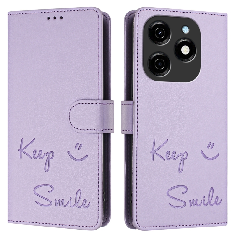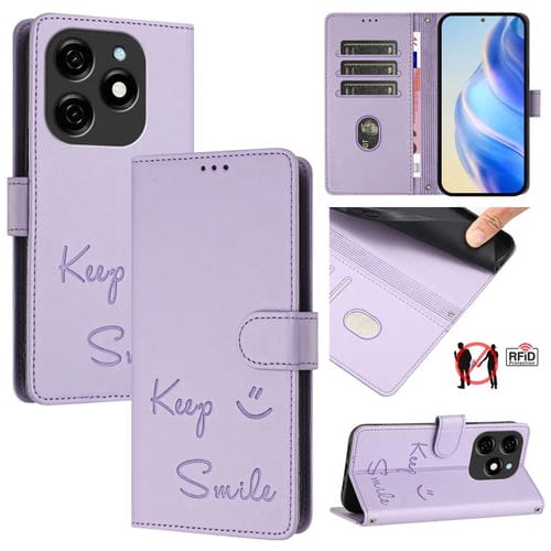 Funda de Cuero Rfid con Relieve Smile para Tecno Spark 20 (Morado Claro)