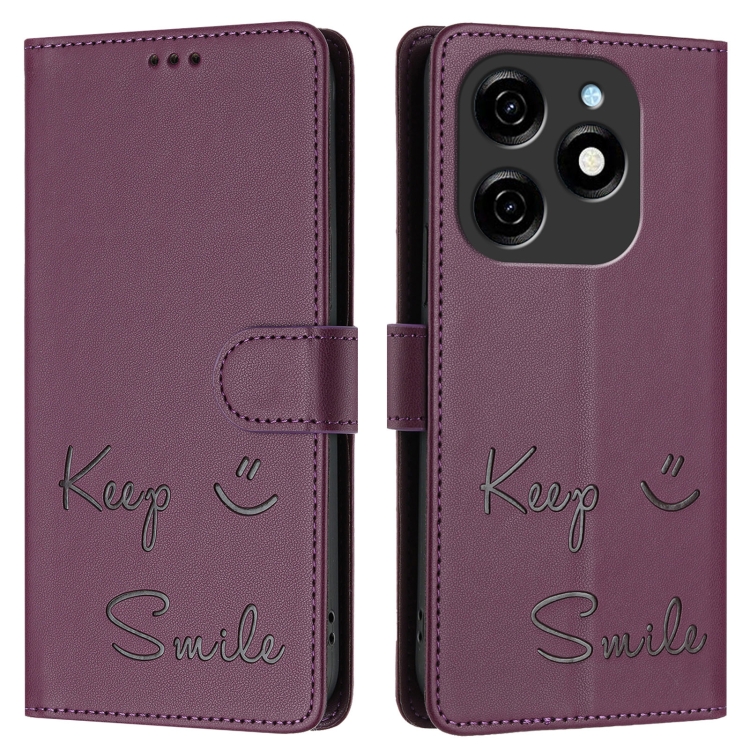 Funda de Cuero Rfid con Relieve Smile para Tecno Spark 20 (Violeta)