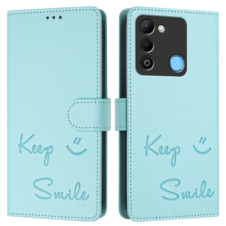 Funda de Cuero Rfid con Relieve Smile para Tecno Spark 9 (Verde Menta)