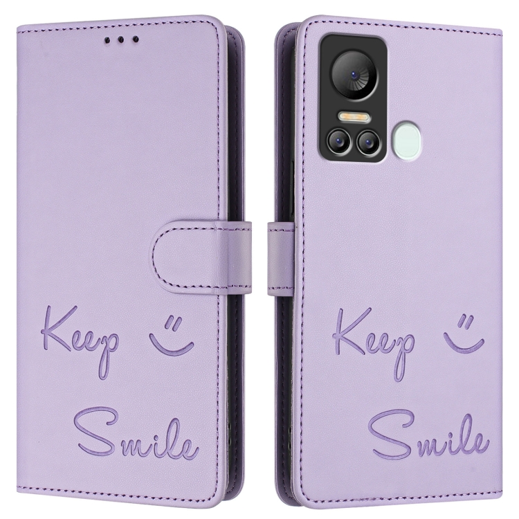 Funda de Cuero Rfid con Relieve Smile para Teléfono Itel S18/Vision 5 (Morado Claro)