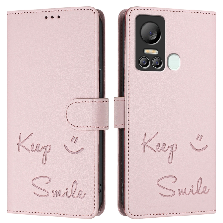 Funda de Cuero Rfid con Relieve Smile para Teléfono Itel S18/Vision 5 (Rosa)