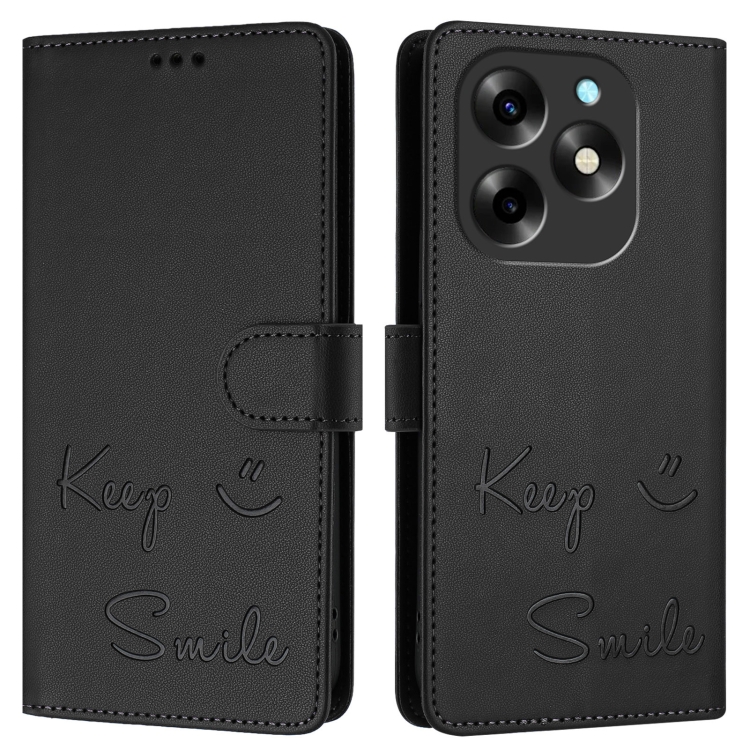 Funda de Cuero Rfid con Relieve Smile para Teléfono Itel S23+ (Negra)