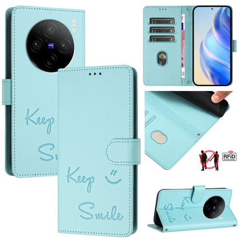 Funda de Cuero Rfid con Relieve Smile para Vivo X100 (Verde Menta)