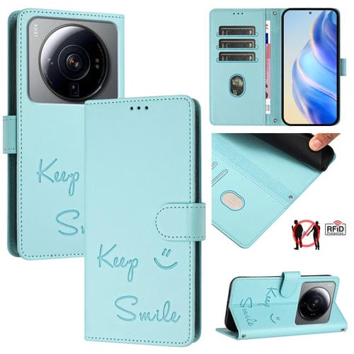 Funda de Cuero Rfid con Relieve Smile para Xiaomi 12S Ultra (Verde Menta)