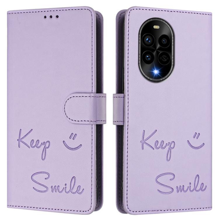 Funda de Cuero Rfid con Relieve Sonriente para Huawei Nova 13 Pro (Morado Claro)
