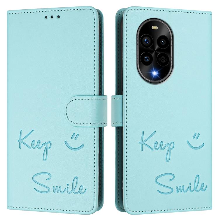 Funda de Cuero Rfid con Relieve Sonriente para Huawei Nova 13 Pro (Verde Menta)