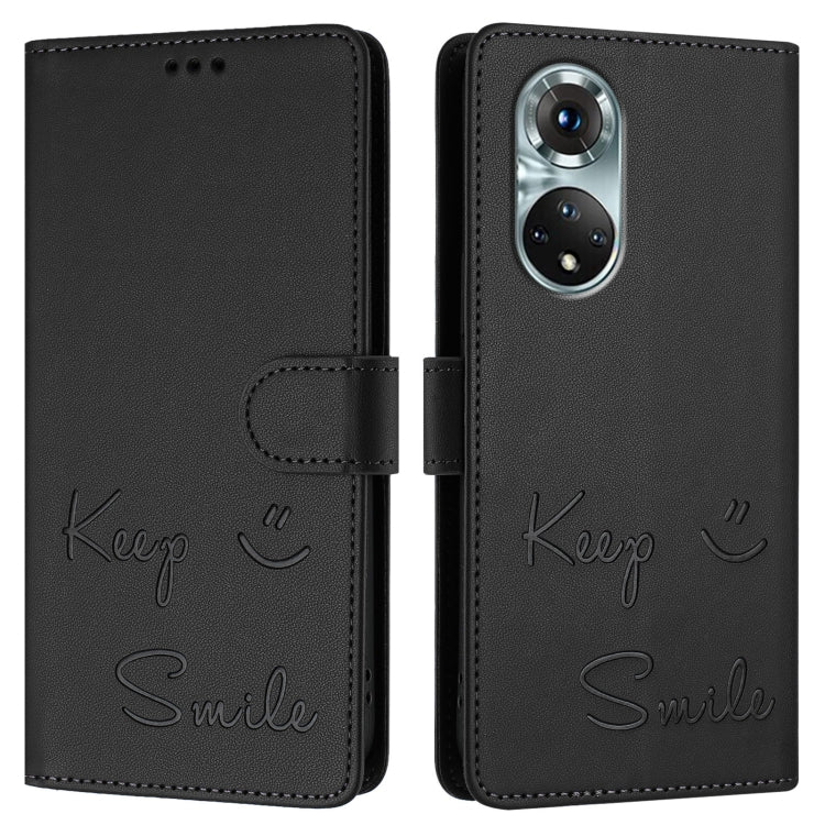 Funda de Cuero Rfid con Relieve Sonriente para Huawei Nova 9 (Negra)