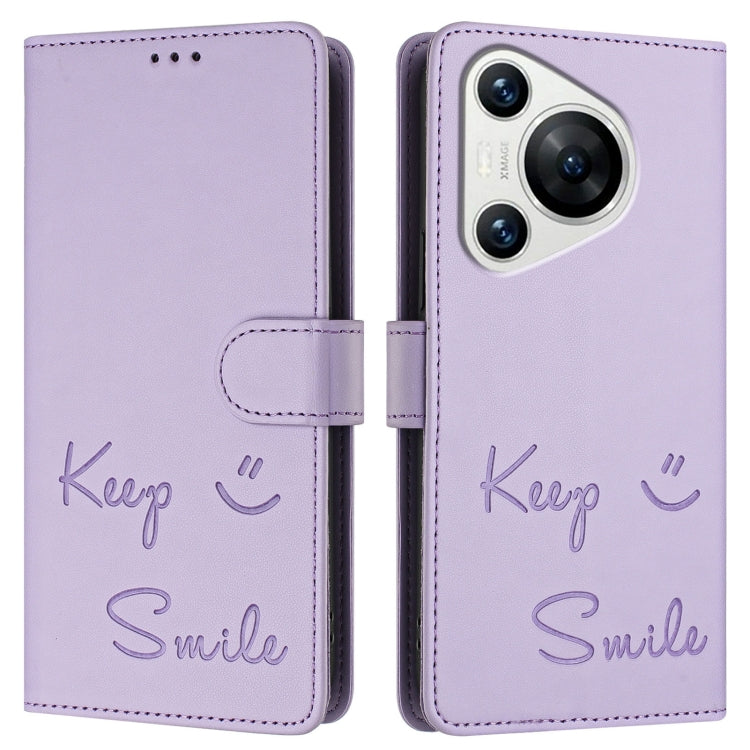Funda de Cuero Rfid con Relieve Sonriente para Huawei Pura 70 (Morado Claro)