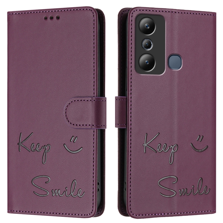 Funda de Cuero Rfid con Relieve Sonriente para Infinix Hot 20I X665E (Violeta)