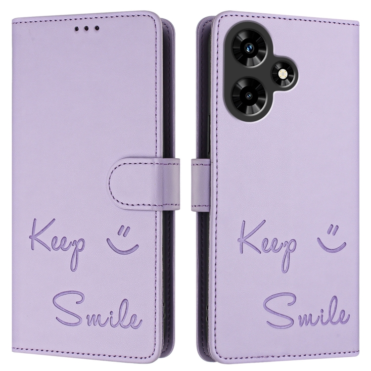 Funda de Cuero RFID con Relieve Sonriente para Infinix Hot 30I (Morado Claro)