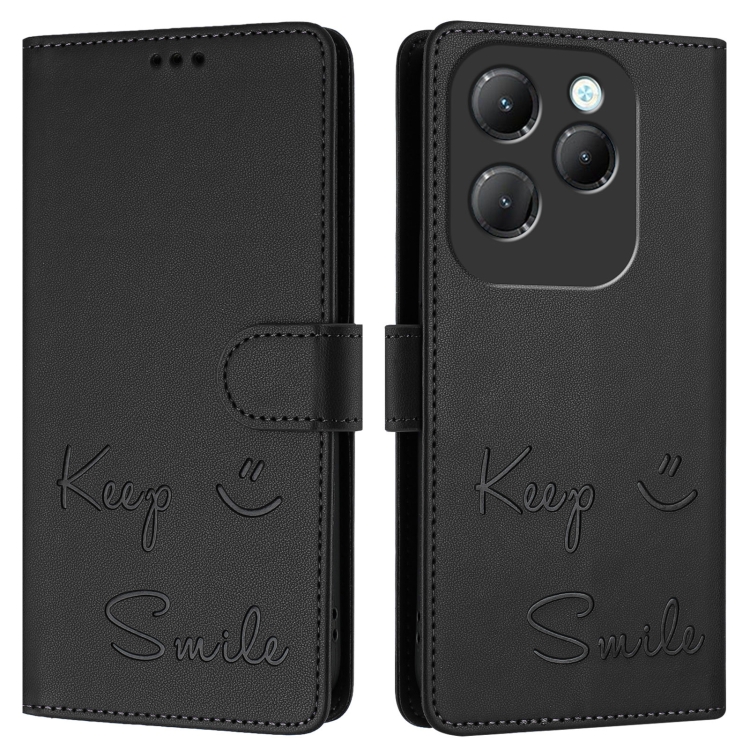 Funda de Cuero Rfid con Relieve Sonriente para Infinix Hot 40 y Hot 40 Pro (Negra)