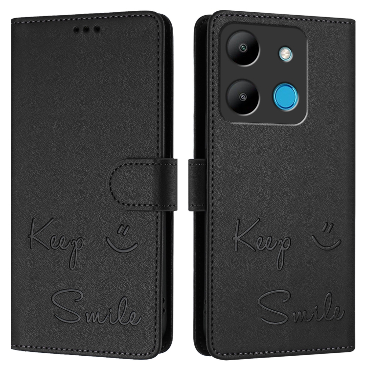 Funda de Cuero Rfid con Relieve Sonriente para Infinix Smart 7 X6515 (Negra)