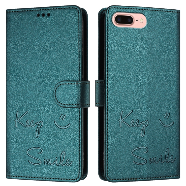 Funda de Cuero Rfid con Relieve Sonriente para iPhone 8 Plus/7 Plus (Verde Pavo Real)