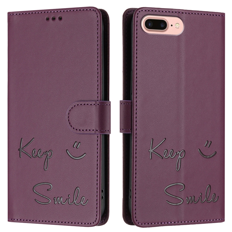 Funda de Cuero Rfid con Relieve Sonriente para iPhone 8 Plus/7 Plus (Violeta)