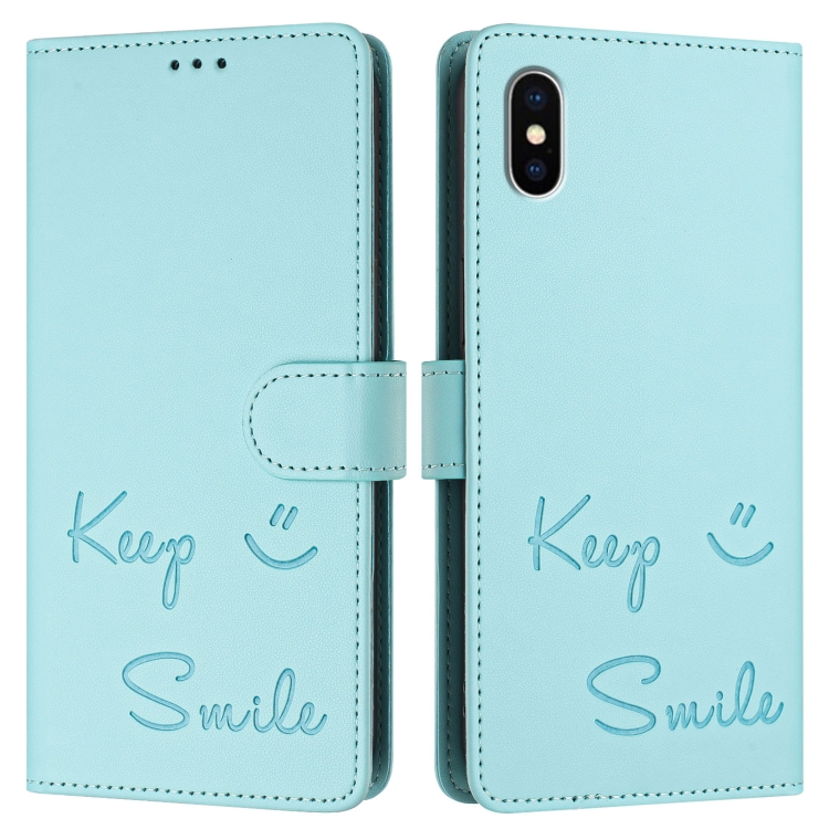 Funda de Cuero Rfid con Relieve Sonriente para iPhone X/Xs (Verde Menta)
