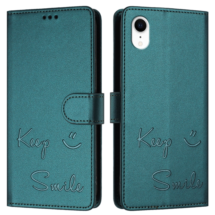 Funda de Cuero Rfid para iPhone Xr con Relieve Sonriente (Verde Pavo Real)