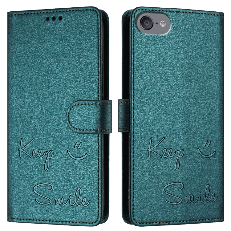 Funda Cuero Rfid para iPod Touch 7/6/5 con Relieve Sonriente (Verde Pavo Real)
