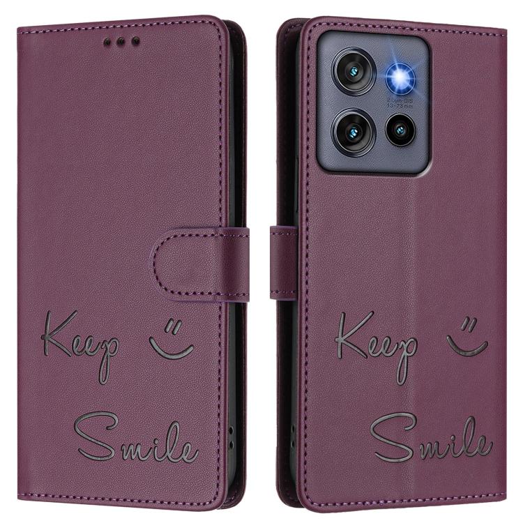 Funda de Cuero Rfid Motorola Moto G Stylus 5G (2025) con Relieve Sonriente (Violeta)