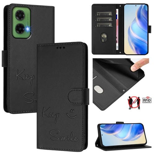 Funda de Cuero Rfid con Relieve Sonriente para Motorola Moto G35 (Negra)