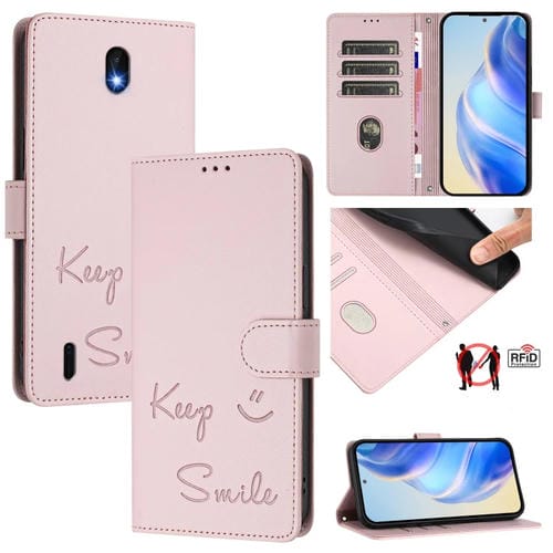 Funda de Cuero Rfid con Relieve Sonriente para Nokia C01 Plus/C1 2.ª Edición (Rosa)